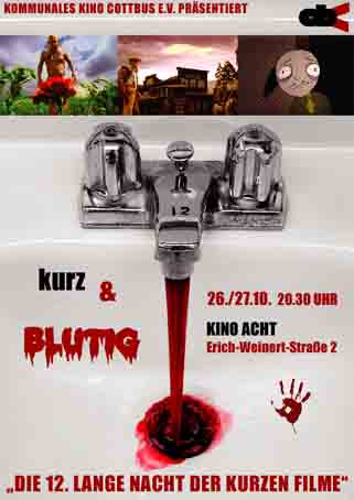 Satire (lat satira; von satura lanx: „mit Früchten gefüllte Schale“, im übertragenen Sinne: „bunt gemischtes Allerlei“). Gut und bunt gemischt ist auch das exklusiv ausgewählte Ei(n)blicke-Kurzfilmprogramm von über 150 Minuten mit vornehmlich deutschen Kurzfilme der letzten Jahre, welches wir im Rahmen des 12. Kabarett-Treffens der Studiosi präsentieren. Die Palette reicht von der großen Weltpolitik bis zu den kleinen menschlichen Schwächen, vom Spielfilm bis zur Animation, vom Grenzwertigen bis zum leicht verdaulichen Filmchen. Und wie immer bei den Kurzfilmnächten des Kommunalen Kino Cottbus e.V. entlässt Sie ein ausgesprochener Publikumsliebling in die Nacht! (zum kompletten Programm)